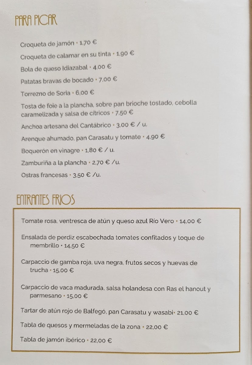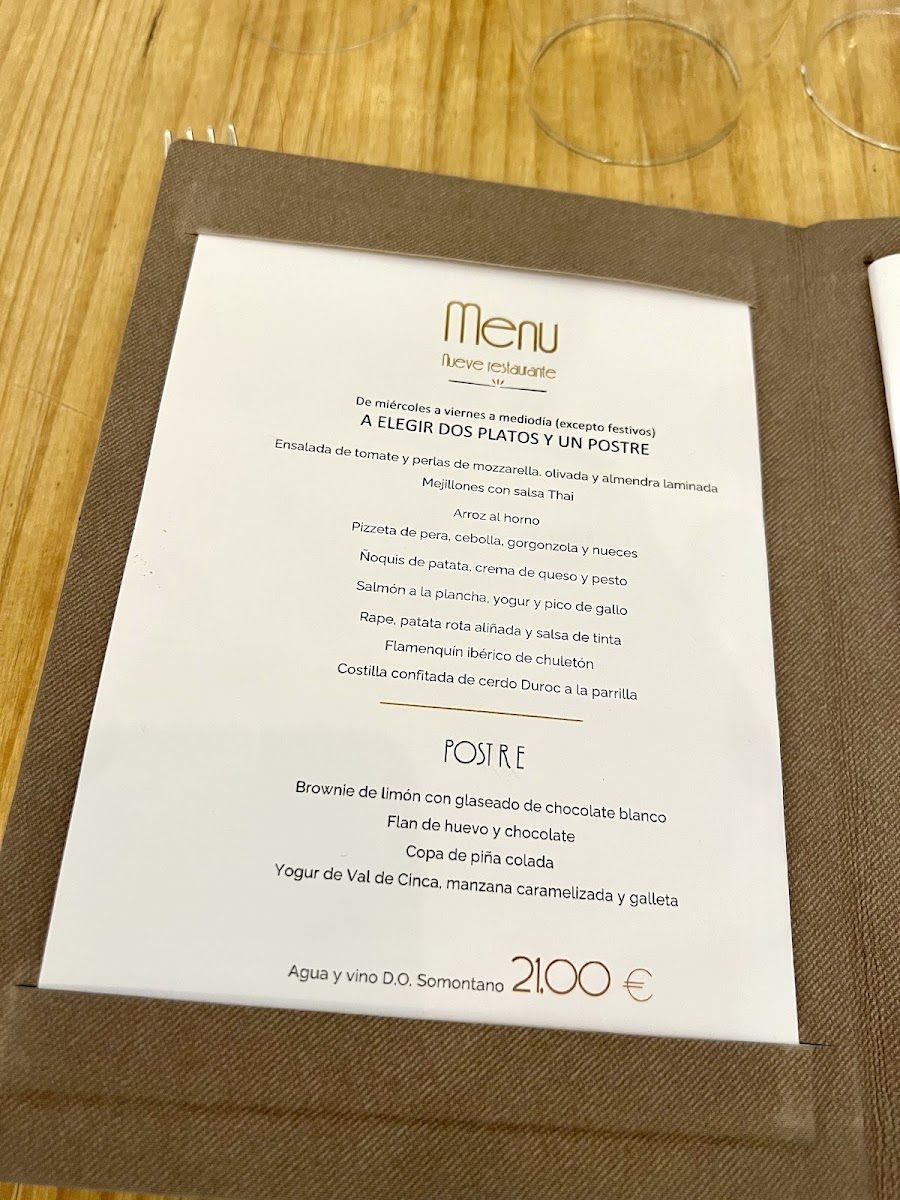 “ Small hidden jewel right in the center of Barbastro. Staff were friendly and professional. Food was superb. Great options of the day based on whatever fresh in in the market. We had cockles and prawns and some kind of curry combo with prawns, scallops and gnocci. We did not expect that would work that well. Great wines and recommendations from the waiters. And very nice atmosphere. What else can you ask for? We paid around 70€ for two, but it was worth every penny ”